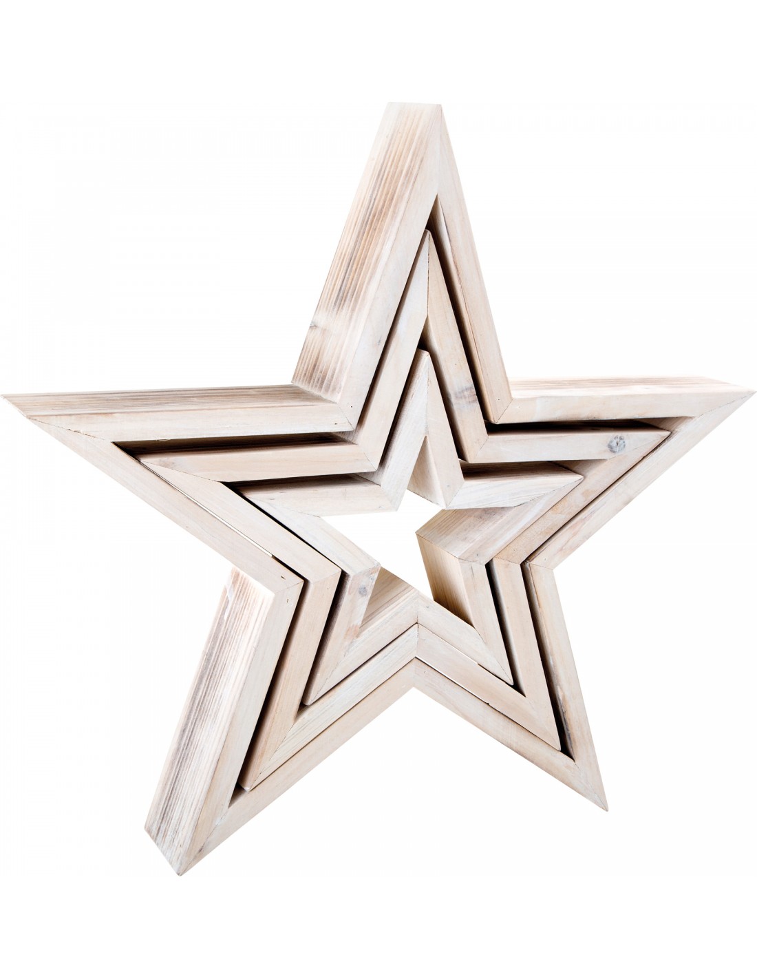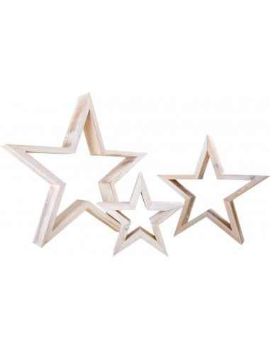 Trois étoiles de différentes tailles au look "Shabby Chic" font office de superbes éléments de décoration pendant la période de Noël. Couchées ou debout, elles feront toujours bonne figure.