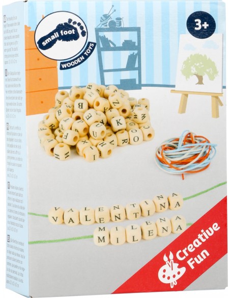 C´est parti, on enfile! Les 300 lettres de l´alphabet en cubes de bois répondent à tous les désirs. Il est possible de créer de jolis colliers de noms à offrir ou à porter soi-même. Les cordons de toutes les couleurs ne passent pas inaperçus. Avec ces lettres de l' alphabet en cubes de couleur nature, on peut créer des mots et des phrases à porter en bracelets ou colliers. Voici également une belle idée de décoration à offrir. Ici, chacun peut laisser libre court à sa créativité!
