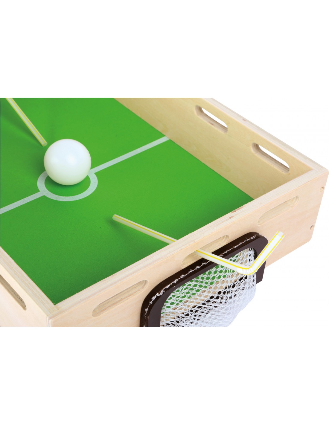 Quel joueur arrive à marquer un but et à «souffler» contre les attaques? C‘est ici que des petits championnats se décident en soufflant avec une paille ! On peut emporter la boîte partout, dans la voiture, la maison ou le jardin - on s'amuse comme des fous !