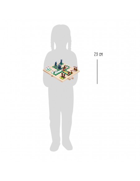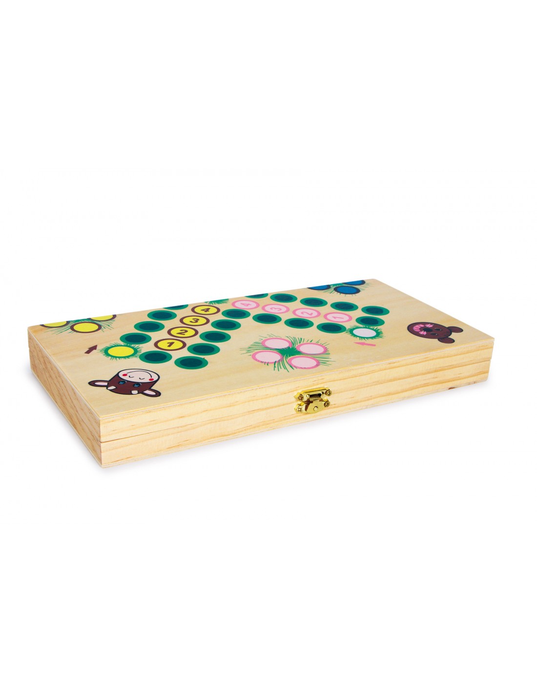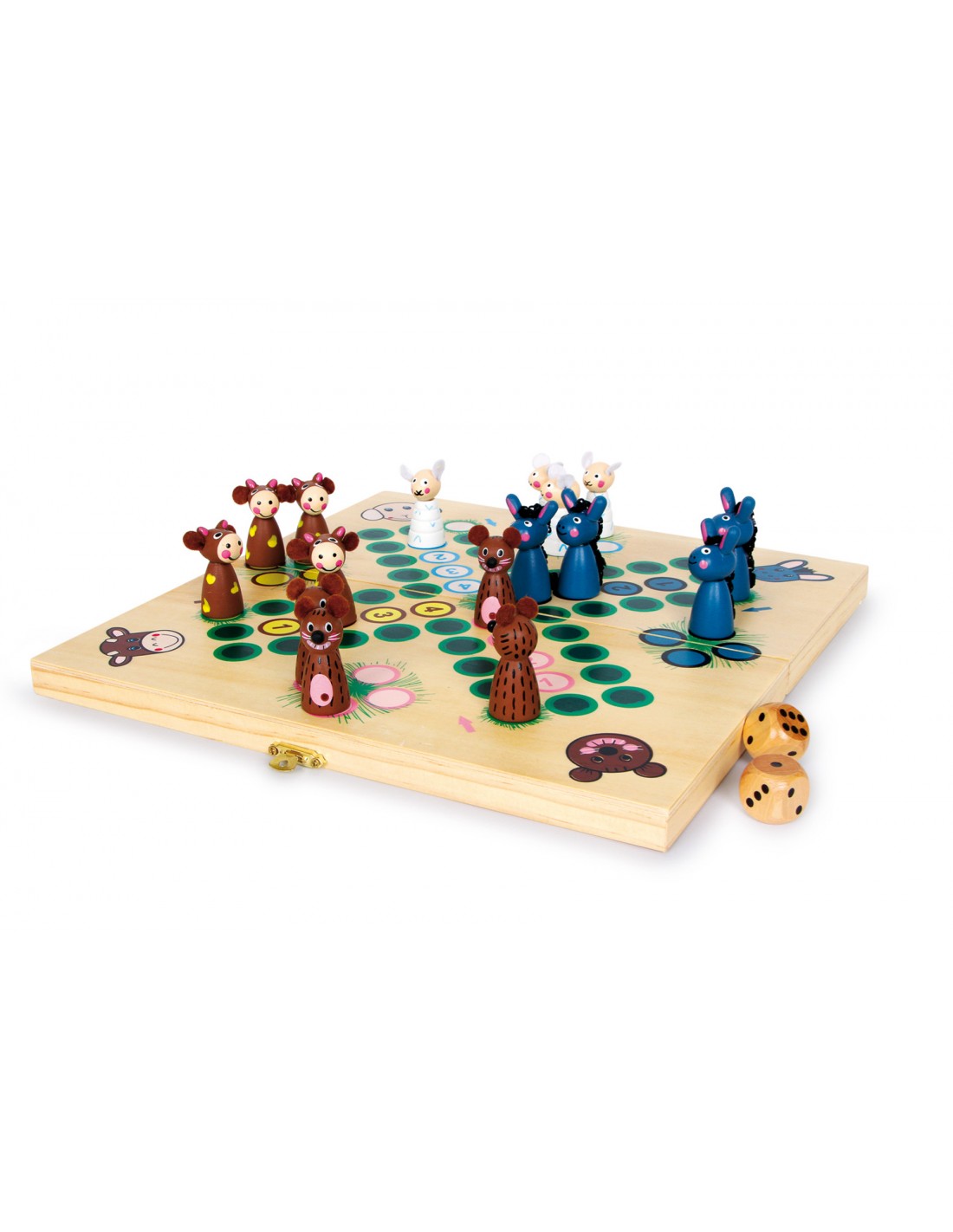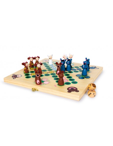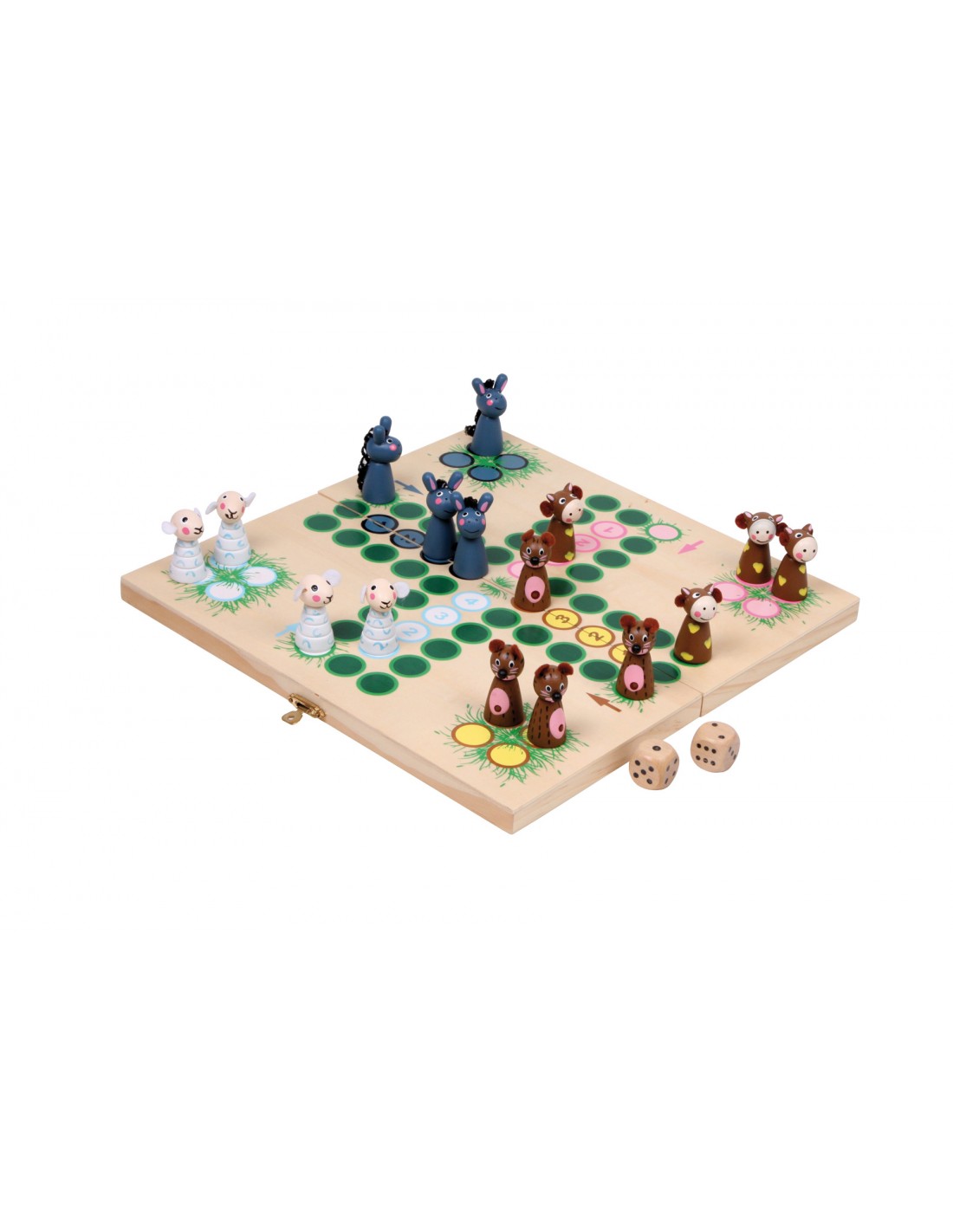 Meuh et meuh ! Ici, quatre animaux de ferme en bois différents sont en compétition. Ils essaient d'atteindre leur chalet en premier avec l'aide du dé afin de gagner la partie. Ici, les enfants apprennent de façon ludique à manier les chiffres et à développer leurs capacités motrices. Le plaisir est préprogrammé. La boîte en bois se ferme facilement par un clic et est prête pour le prochain jeu.